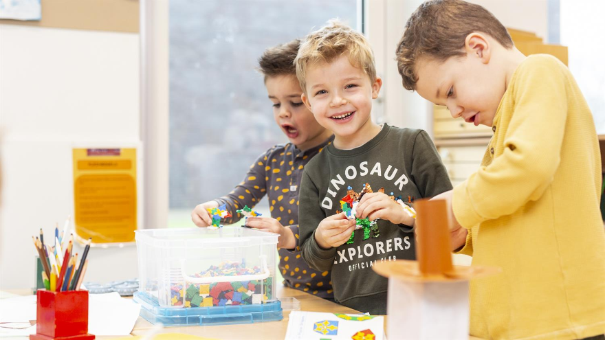 Onze kleuters zitten bewust in gecombineerde groepen 1/2. Vanuit de Leerlijnen Jonge Kind leren zij spelenderwijs en binnen betekenisvolle thema’s. De leerkracht stemt het aanbod af op observaties en de ontwikkeling van ieder kind.